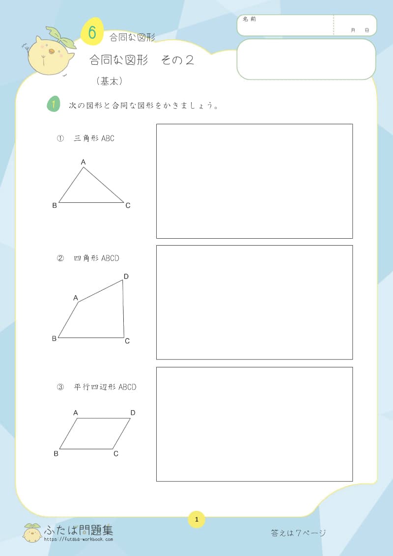 小学5年生の算数プリント問題集 合同な図形まとめ