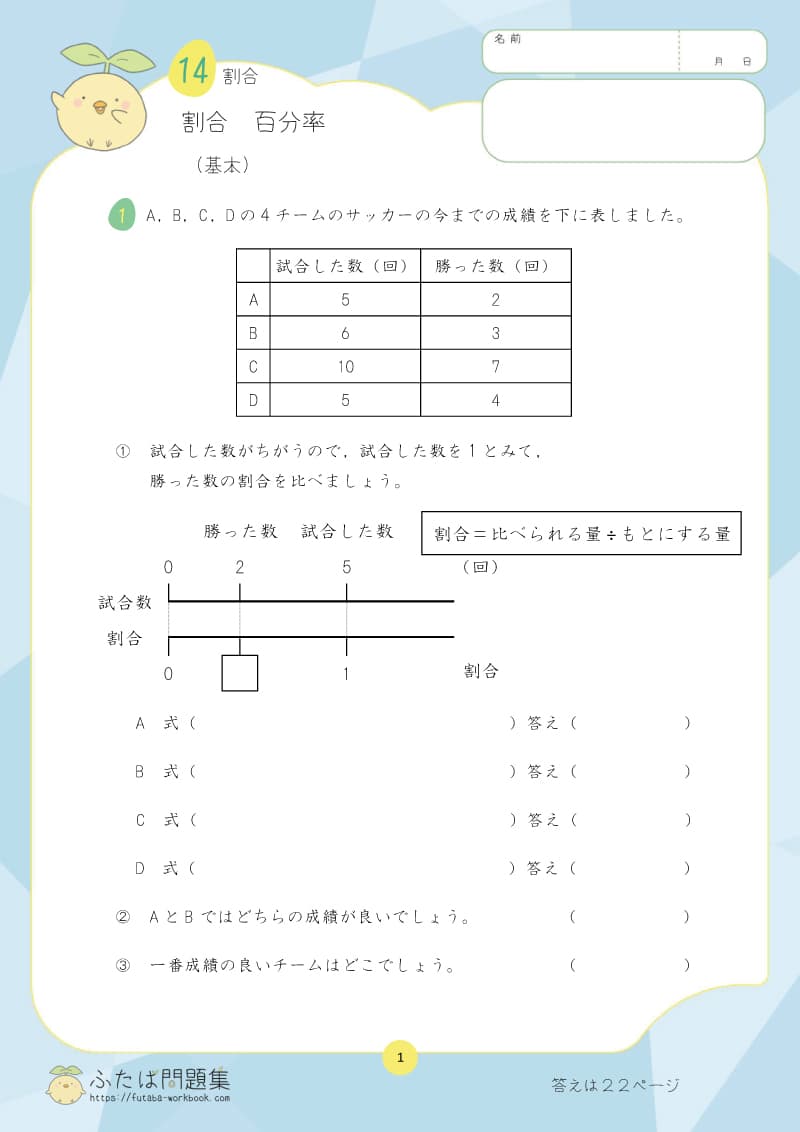 小学5年生の算数プリント問題集 もとにする量 比べられる量