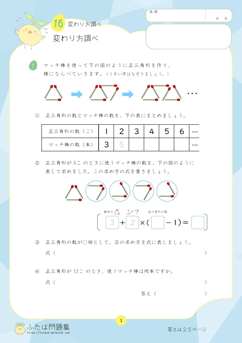 小学5年生の算数プリント問題集 変わり方調べまとめ